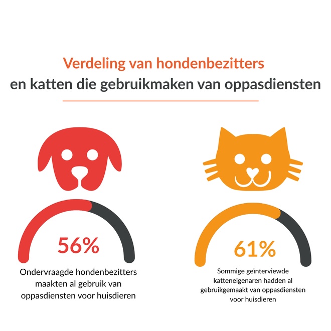 Uit ons onderzoek blijkt dat 58% van de respondenten al gebruik heeft gemaakt van een oppasdienst voor hun dieren, met een lichte voorkeur bij katteneigenaars (61%) ten opzichte van hondeneigenaars (56%). Het gebruik van deze diensten is gelijkmatig verdeeld, ongeacht de sociaal-professionele categorie, de samenstelling van het huishouden of de leefomgeving.