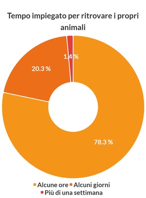 Tra gli animali scomparsi, il 56,5% è stato ritrovato vicino all’abitazione (a meno di 200 metri).