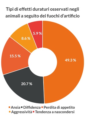 Solo il 9,3% degli animali non mostra alcuna reazione particolare ai fuochi d’artificio.