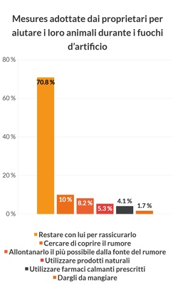 La nostra indagine indica che il 70,8% dei proprietari sceglie di rimanere con il proprio animale per rassicurarlo durante i fuochi d’artificio.