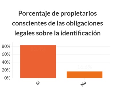 Según nuestra encuesta, el 83,4% de los propietarios de animales son conscientes de las obligaciones legales relacionadas con la identificación de sus mascotas en su país.