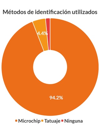 El 94,2% de los animales de los encuestados está identificado mediante un microchip, lo que convierte este método en el más utilizado. Sin embargo, menos del 2% sigue sin estar identificado.