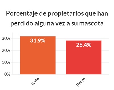 Nuestra encuesta muestra que el 30,2% de los encuestados ha perdido alguna vez a su mascota, con tasas similares para gatos (31,9%) y perros (28,4%).