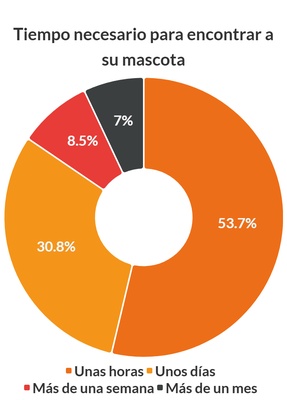 Más de la mitad de los animales perdidos (53,7%) se encuentran en pocas horas.